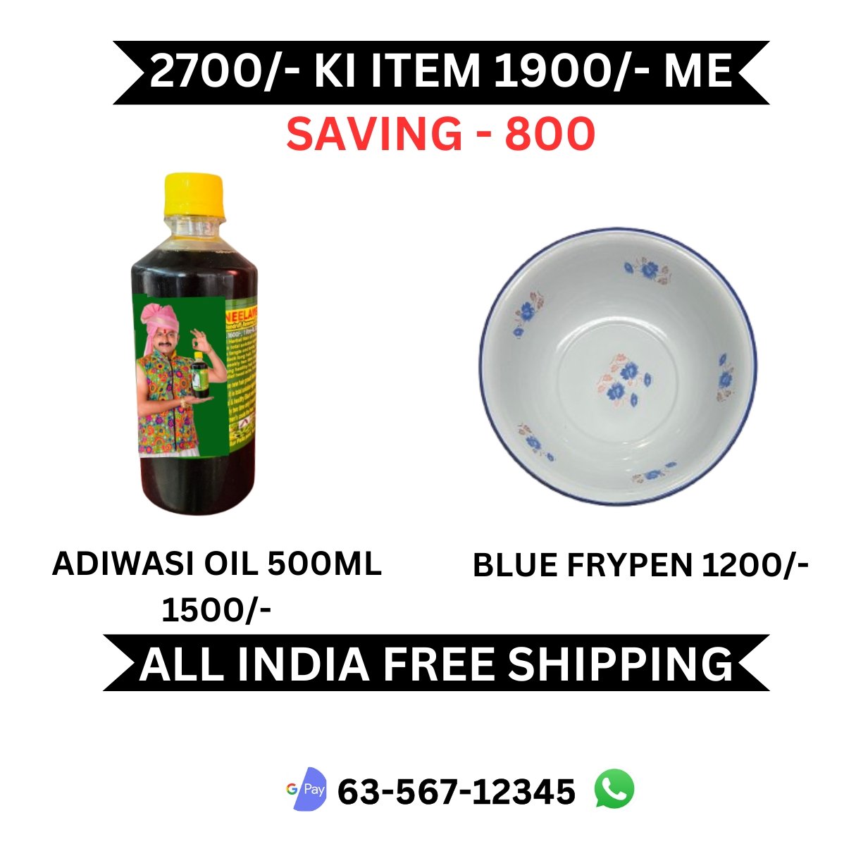 + Free ShippingADIWASI OIL 1500/- + BLUE FRYPEN 1200/- = 2700/-